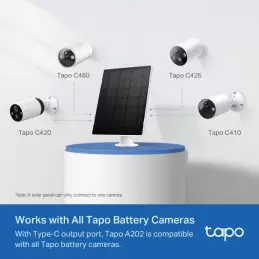 Grazie alla porta Type-C il pannello solare A202 è compatibile con tutte le telecamere Tapo a batteria, garantendo la massima protezione in ogni periodo dell'anno. È ad esempio compatibile con i modelli C460, C420, C425, C410