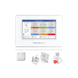 Evohome Honeywell Home from Resideo è un sistema di termoregolazione a zone wifi programmabile. Il kit da noi proposto comprende un pannello touchscreen a colori Evotouch Wi-Fi (gestione fino 12 zone), 4 testine termostatiche wireless HR92 con display orientabile retroilluminato e modulo relè wireless per comando caldaia.
