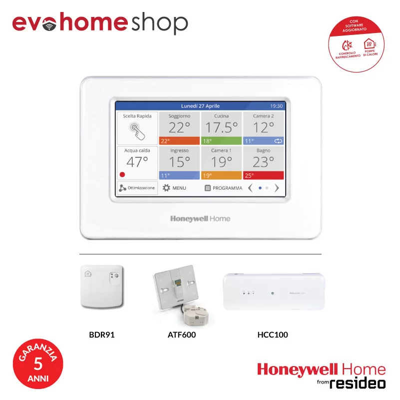 Evohome Honeywell Home from Resideo è un sistema di termoregolazione smart per la casa a zone. Il grande vantaggio di questo sistema è la possibilità di gestire la temperatura di ben 12 zone (8 in caso di riscaldamento a pavimento) distinte della casa, ognuna con la sua temperatura. Questo sistema ti dà la possibilità di avere la temperatura desiderata in ogni stanza programmandone gli orari e spegnendolo nel caso non sia necessario riscaldare. Oltre ad un maggiore livello di comfort, Evohome Honeywell Home from Resideo ti permette di risparmiare sui consumi razionalizzando l'uso della caldaia.
