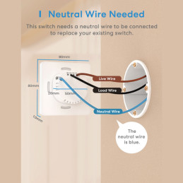 L'interruttore wi-fi MSS510 si istalla in maniera semplice e rapida alla parete collegando necessariamente il filo neutro (blu). Non necessita di un hub per funzionare, è sufficiente collegare il dispositivo al wi-fi che già possiedi.