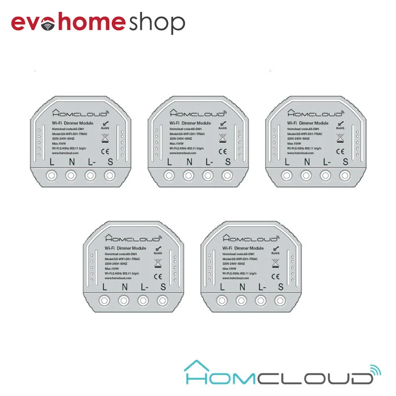 Pack formato da 5 moduli Wi-fi dimmerabili da incasso 1CH AS-DM1 Homcloud