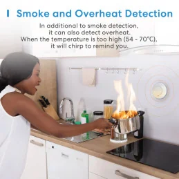 Il rilevatore di fumo smart GS559AHK è un dispositivo capace ad aumentare il livello di sicurezza della tua abitazione. È adatto sia ad abitazioni private che a camere di hotel, negozi. etc. È capace di rilevare sia fumo che surriscaldamento nella stanza emettendo un segnale acustico ogni volta che la temperatura va oltre ai 55-70°C.