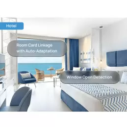 Rilevamento finestra aperta: la regolazione della temperatura si interrompe automaticamente quando una finestra viene aperta, riducendo al minimo gli sprechi energetici e supportando gli obiettivi ESG degli hotel.