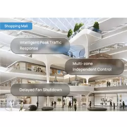 Risposta intelligente ai picchi di affluenza: integrato con il sensore di conteggio VS133, regola automaticamente la velocità della ventola assicurando un raffrescamento rapido, prevenendo l’afa e migliorando la qualità dell’esperienza dei visitatori.
