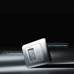 Flessibilità totale: il termostato offre 8 programmi personalizzabili, ognuno con fino a 16 orari configurabili, adattandosi a qualsiasi esigenza.