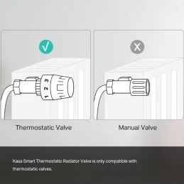 La valvola termostatica per funzionare ha bisogno necessariamente di un hub "Kasa Hub KH100" che permette al dispositivo di connettersi alla rete domestica. Ogni hub può gestire fino a un massimo di 32 radiatori.